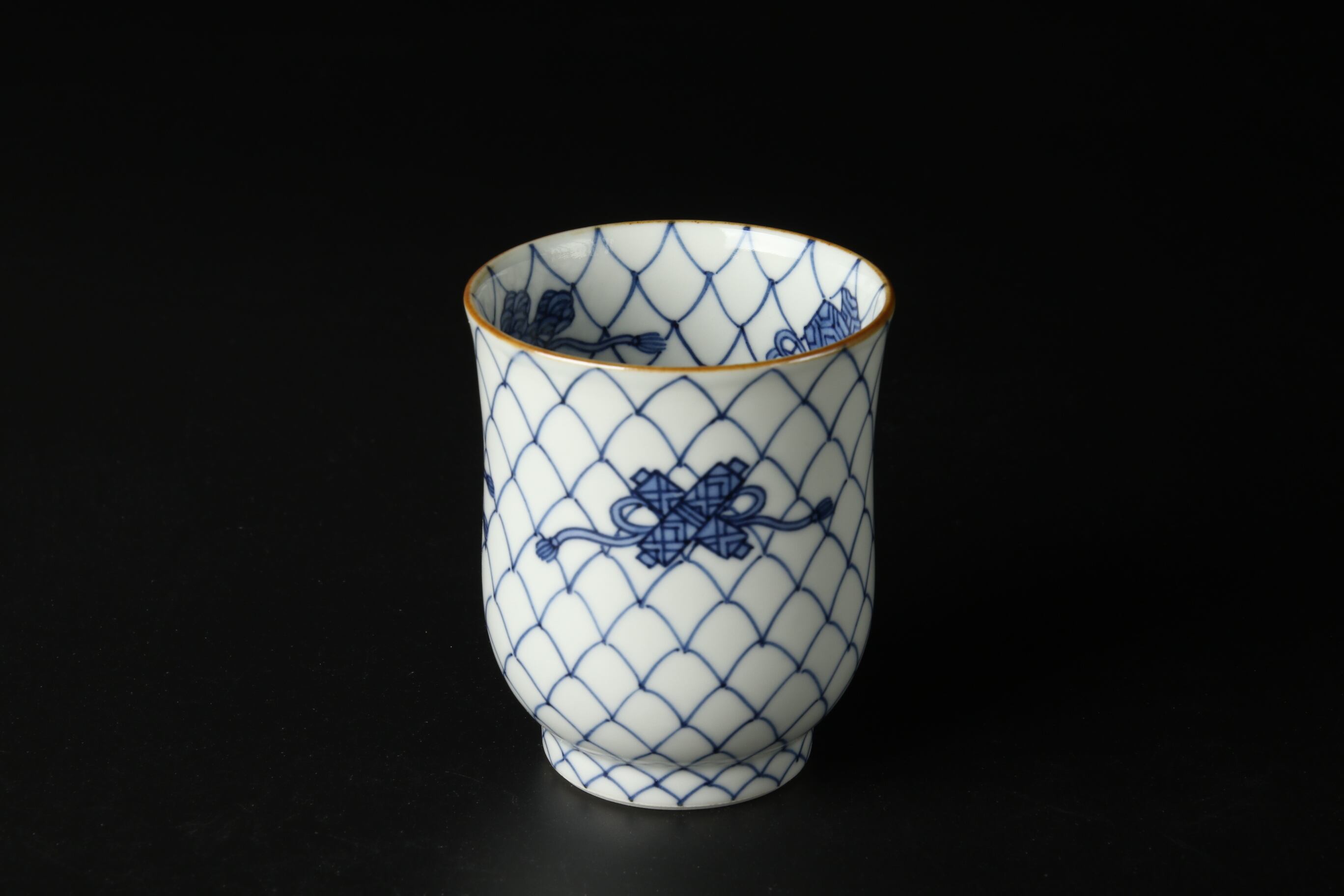 派手派手しさはなくとも落ち着いた染付でおめでたい表現がされた湯呑です。