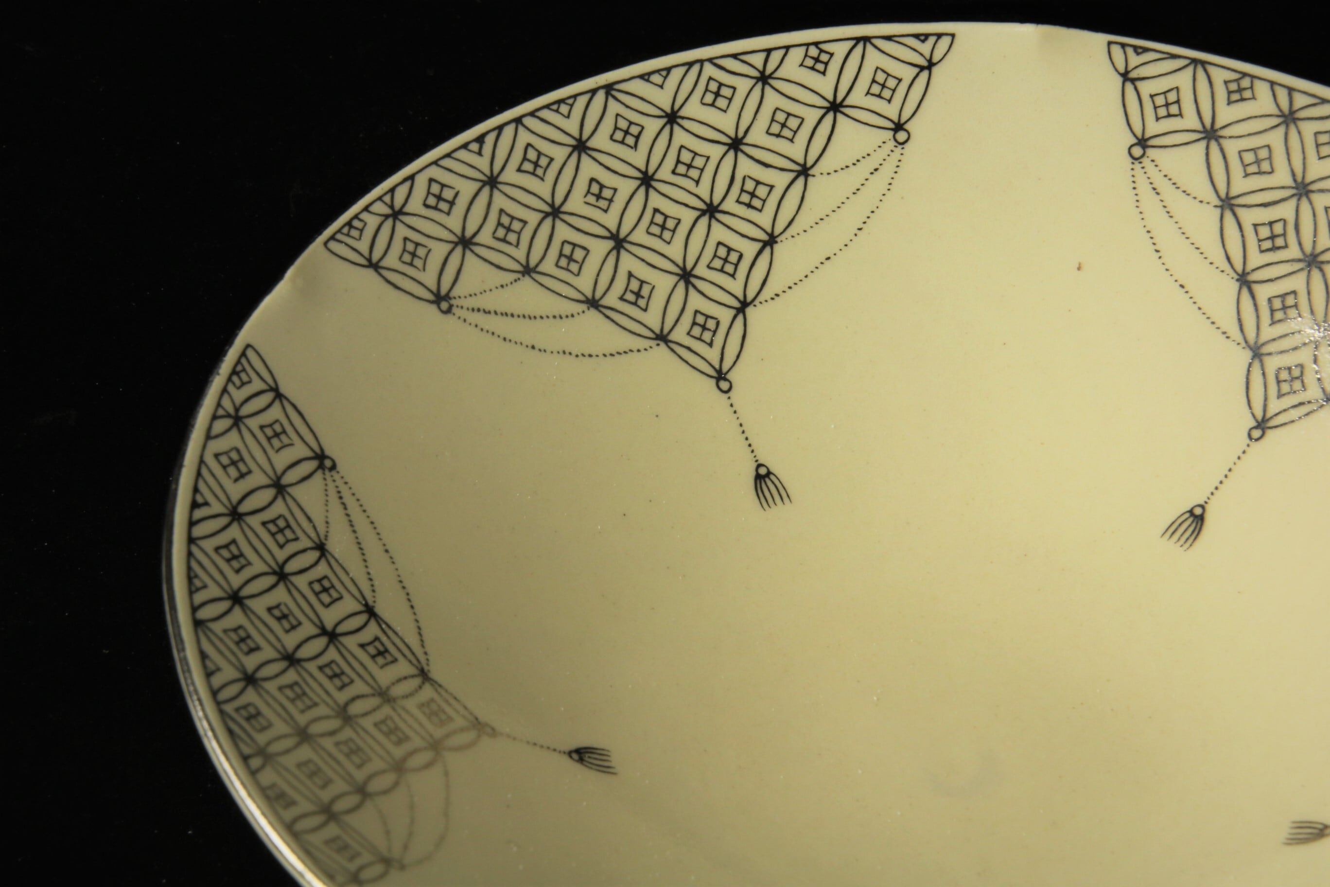 きめ細かいなめらかな生地の向付。料理が盛り込まれる中央部分を照らすように細かな銀彩装飾がされています。